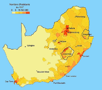 L’afrique du sud compte presque 5 fois plus d’habitants que la Belgique. Malgré ce grand nombre, les résidents ne sont pas réparties également dans le pays. En effet, la plupart des gens vivent à l’est, ce qui est expliqué par l’aridité de l’ouest.