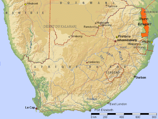 Le Parc Kruger se situe dans le nord-Est de l’Afrique du sud. De plus il se trouve à la frontière du Mozambique. C’est de loin le plus grand Parc d’Afrique . Il a comme coordonnée 24° Sud et 31,29° Est. Son nom complet est le parc Paul Kruger, Car il fut à la création de la Sabie Game réserve qui en fait partie.