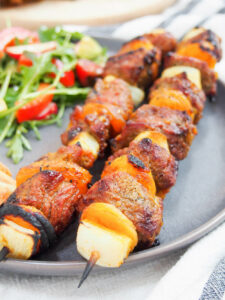 Brochettes d’agneau ou de mouton avec des abricots secs.